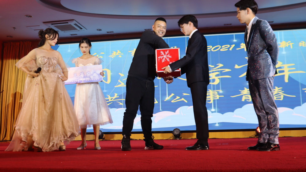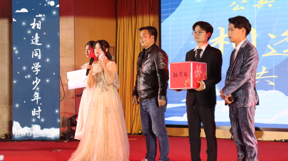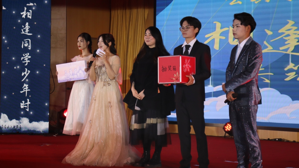 抽奖环节,陈仁锋、林长泉、何芳代表校友们上台互动,抽取并颁发奖品。校友们表示,毕业多年后第一次重回母校参加迎新晚会并与学弟学妹同乐,别样感觉。期待以后参与更多活动,助力母校共同成长。