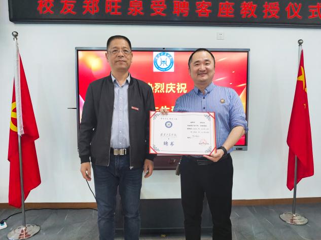 讲座结束后,会计学院院长甘健胜为郑旺泉颁发客座教授聘书。