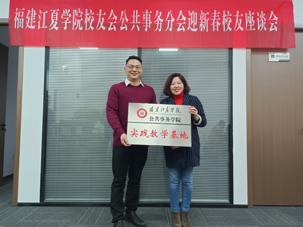 冬阳和煦静无风,欢声笑语迎新春。2022年1月10日,福建江夏学院校友会公共事务分会召开2022年迎新春校友座谈会。公共事务学院党委书记张洁、福建江夏学院统战部副部长李风,福建江夏学院校友会公共事务分会副会长林长泉、分会常务理事江富泉和理事涂一飞、张荫有,公共事务学院杨海、严圣明老师等一同参加了座谈会。座谈会在中安能(福建)建设发展有限公司举行。